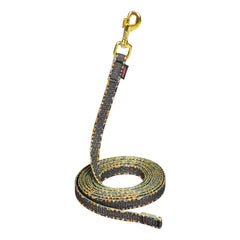 - Griffigkeit und Kontrolle: Dank des eingewobenen Gummifadens liegt die Leine sicher in der Hand.