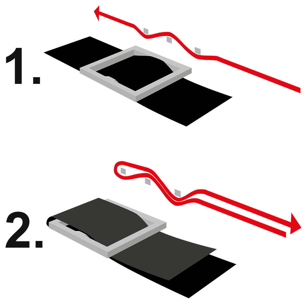 2. Das Gurtende zurückschlagen und erneut durch Schlitz 1 führen.