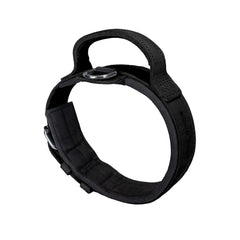 Our very soft greased leather collar with handle has a wide, soft padding on the inside and padding under the metal fittings. The handle and the tether ring underneath give you full control at all times. The collar can be adjusted in several stages using a pin buckle.