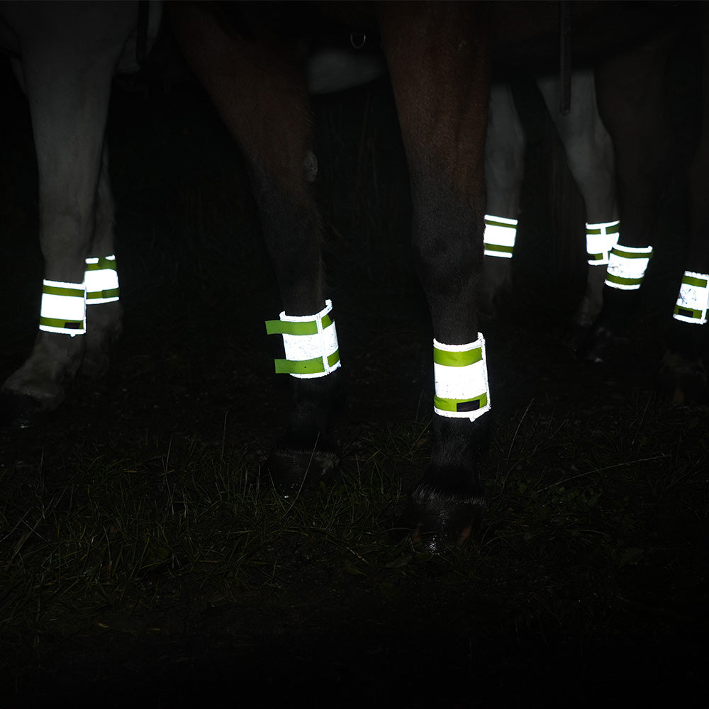 Our luminous gaiters are highly reflective and hard-wearing. The Velcro fastener is infinitely adjustable and is designed in such a way that it is almost impossible to open unintentionally. These reflective gaiters are perfect for riding out in the dark or in poor weather conditions. The soft fleece lining ensures a very good hold on the leg and does not chafe. The 50mm wide reflective strip and the reflective edging ensure optimum visibility, even in poor conditions.