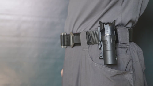 The V31 holster offers maximum adjustability combined with robustness and safety. The belt clip can be easily adapted to belts or tactical vests and is even MOLLE-compatible. The flashlight holder can be rotated by 360° and thus enables optimal adaptation to your needs. With the FR-1 guide, the lamp is fixed in the holster and secured against falling out or unauthorized removal.