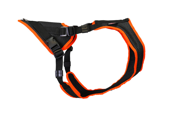 La différence avec le Vary Standard harnais réside dans le fait que la partie dorsale et ventrale est allongée et qu'il possède en plus une deuxième ceinture ventrale ainsi qu'une deuxième poignée de maintien. Cela permet d'aider le chien à sauter dans la voiture, à monter les escaliers, etc. Le harnais est généralement bien ajusté et convient particulièrement bien aux chiens longs et étroits.
