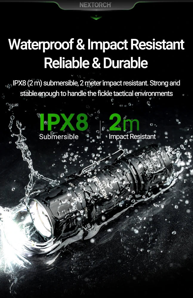 Grâce à sa construction compacte et à son énorme puissance, la NEXTORCH TA20 est le premier choix pour les EDC, l'extérieur, le service, etc. Elle peut être rangée partout sans problème et ne peut pas être allumée par erreur grâce au mode LOCK. La livraison comprend également le guide FR-1 qui facilite encore plus la manipulation. La lampe dispose d'un brise-verre nano-céramique dans la couronne de la lentille.