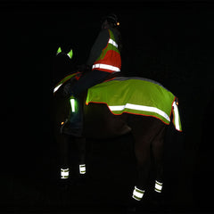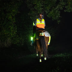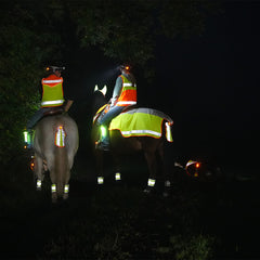 La bande lumineuse pour queue Colorado assure une visibilité optimale de votre cheval grâce à ses larges bandes réfléchissantes. La surface généreuse sur la queue de votre cheval est clairement visible, même sur de longues distances et sous différents angles. La bande lumineuse de queue se fixe à l'aide d'un velcro. Pour un maintien optimal, il est préférable de coincer les poils de la queue entre les surfaces velcro lors de la fermeture, ce qui garantit un maintien sûr et une liberté de mouvement optimale.