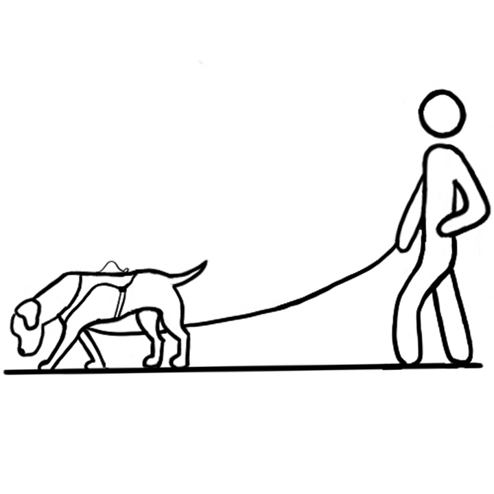 Il imbracatura è adatto anche per il lavoro di tracciamento: su richiesta, possiamo applicare un anello alla sezione del ventre. La lenza viene fissata a questo anello e fatta passare tra le zampe posteriori.