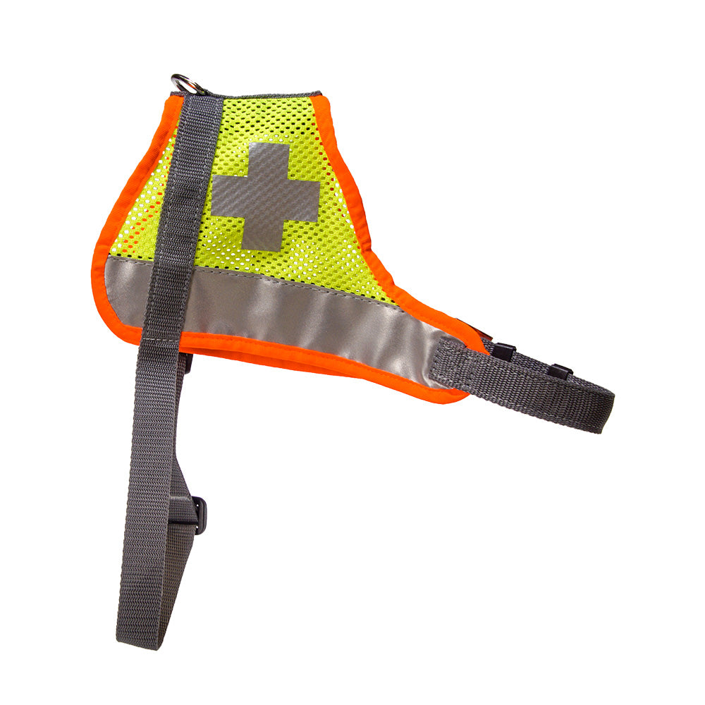 La nostra coperta medica Gina offre un'ottima visibilità, anche in condizioni di scarsa illuminazione. Le strisce e la croce riflettenti assicurano un'ottima visibilità anche lateralmente. È inoltre possibile personalizzare il sito imbracatura con il logo del club, luci a LED, ecc. Le cinghie in vita e la cinghia sulla parte anteriore del petto sono regolabili in continuo e un anello a D è cucito sulla schiena.