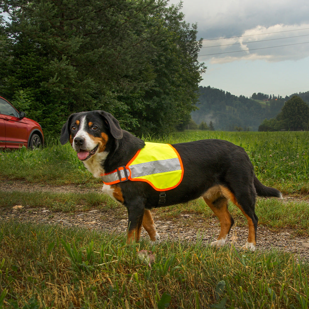 - rundum sichtbar, auch bei langhaarigen Hunden